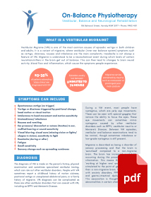 Dizziness often accompanies headaches or migraines and On-Balance Physiotherapy will be able to determine if your dizziness is vestibular in origin or relates to your neck or another disorder. Your assessment includes the use of state of the art diagnostic tools. We have skilled practitioners to differentiate the cause and provide the necessary treatment to overcome your problem.